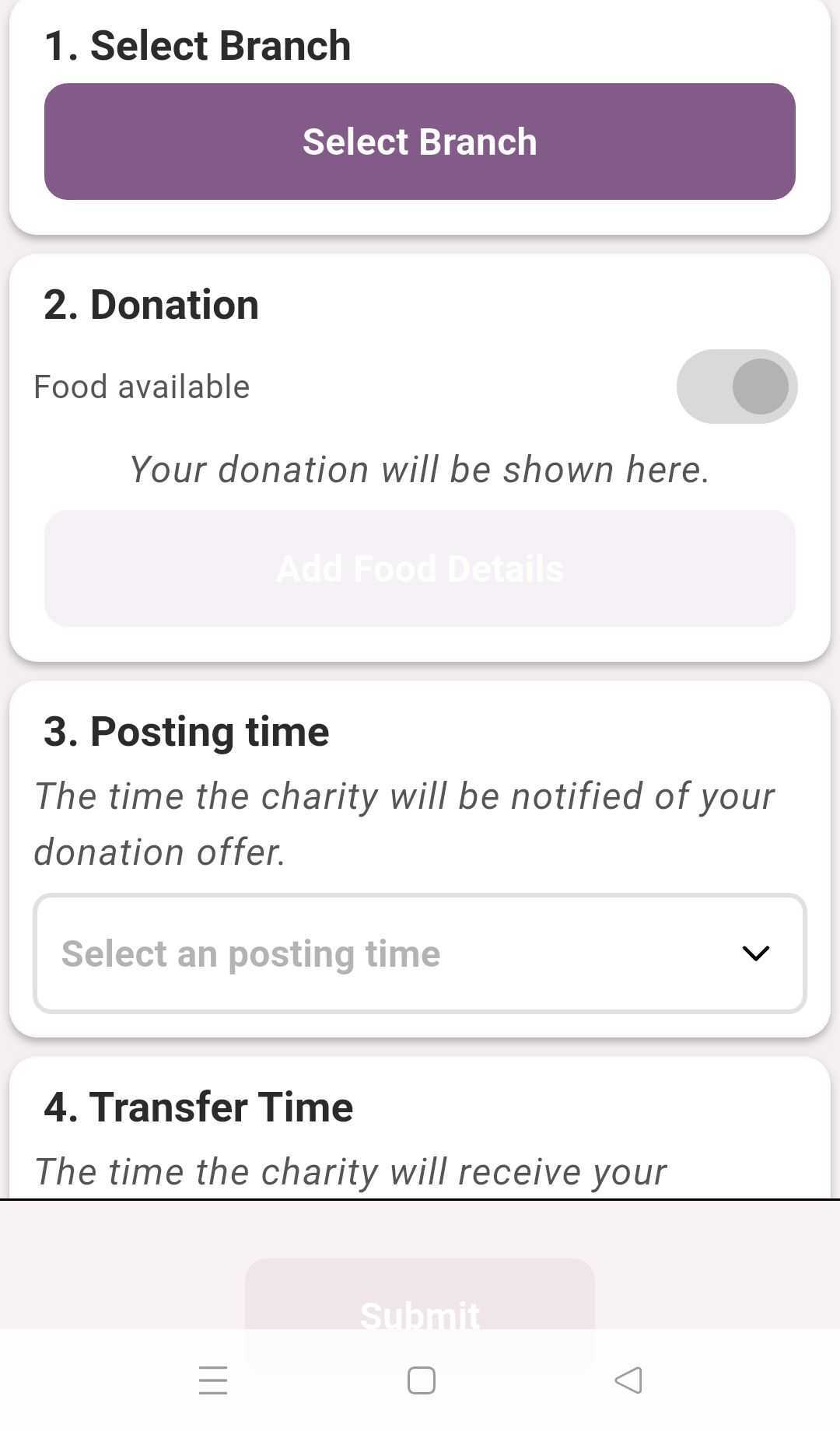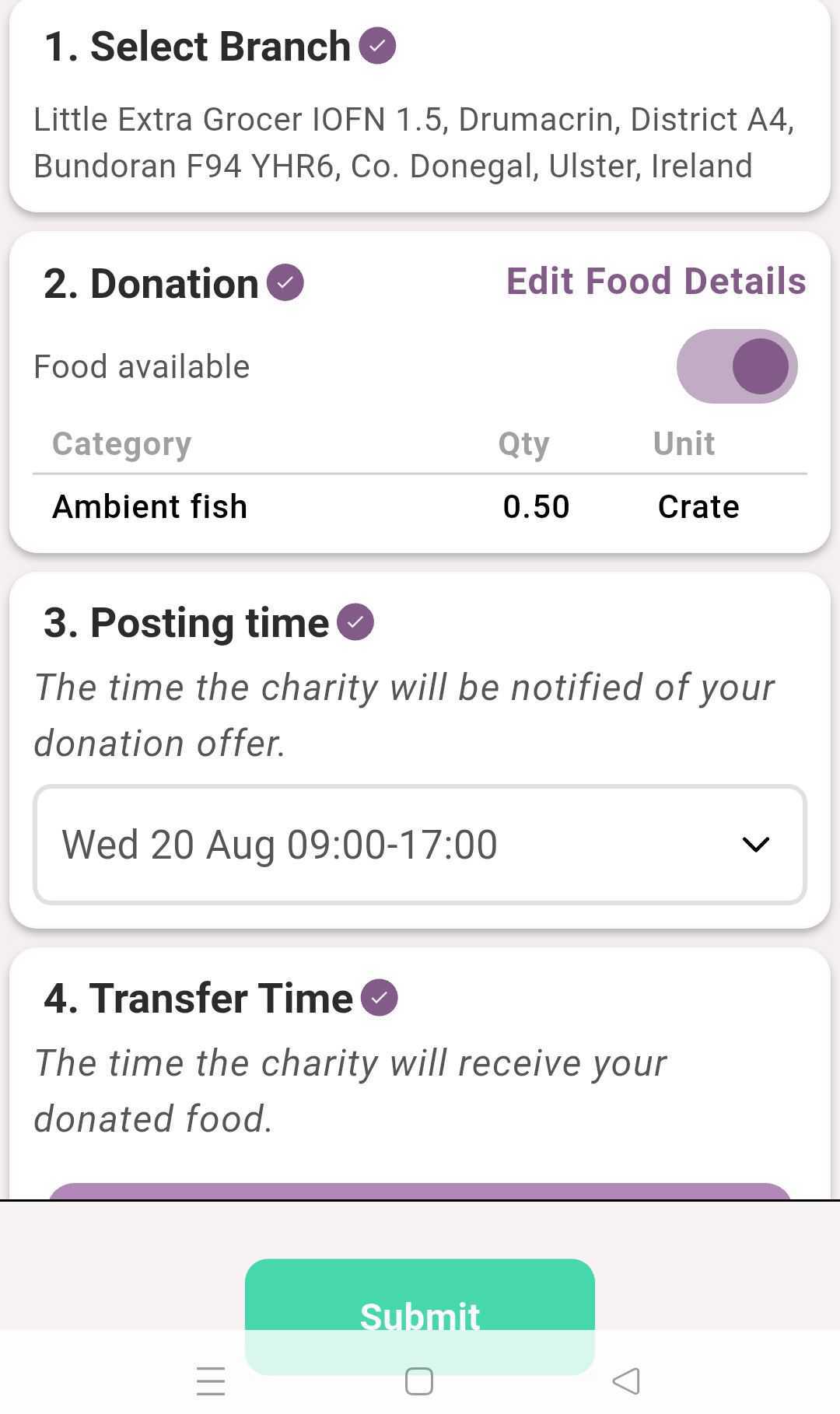 As a donor or food bank, you are able to donate food at “expected” times, or in an ad hoc, unplanned manner. This can be done from the app or website, or through a Foodiverse-integrated scanner
