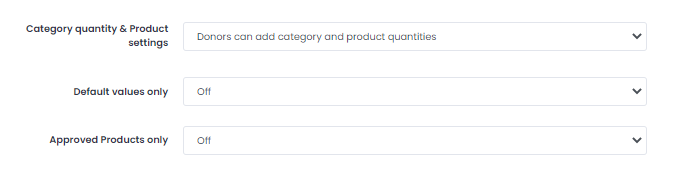 There are a number of configuration settings that influence how a User can add Food Categories or Product details when Creating a donation.
