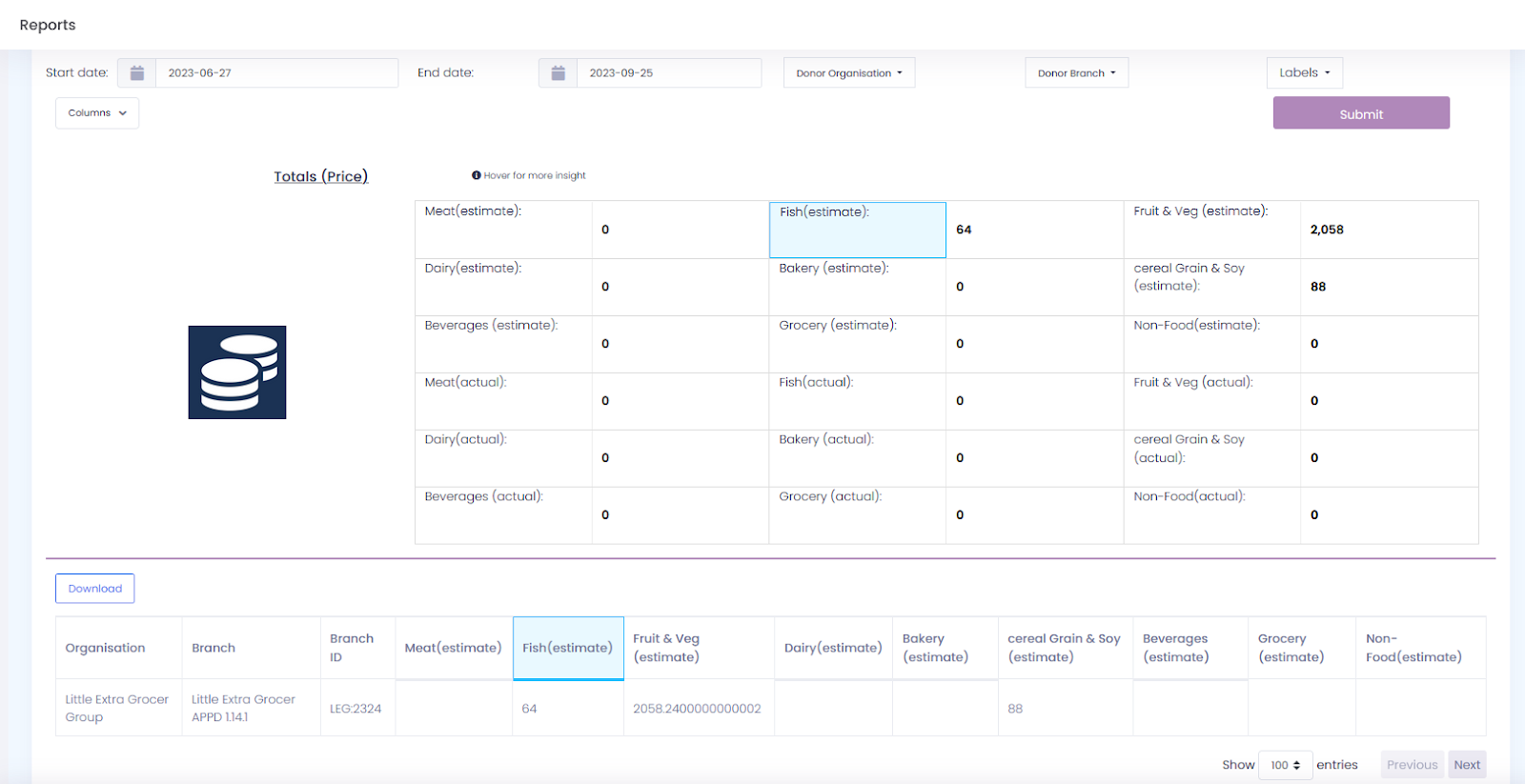 This report can be viewed by donor organisations and food network admins.