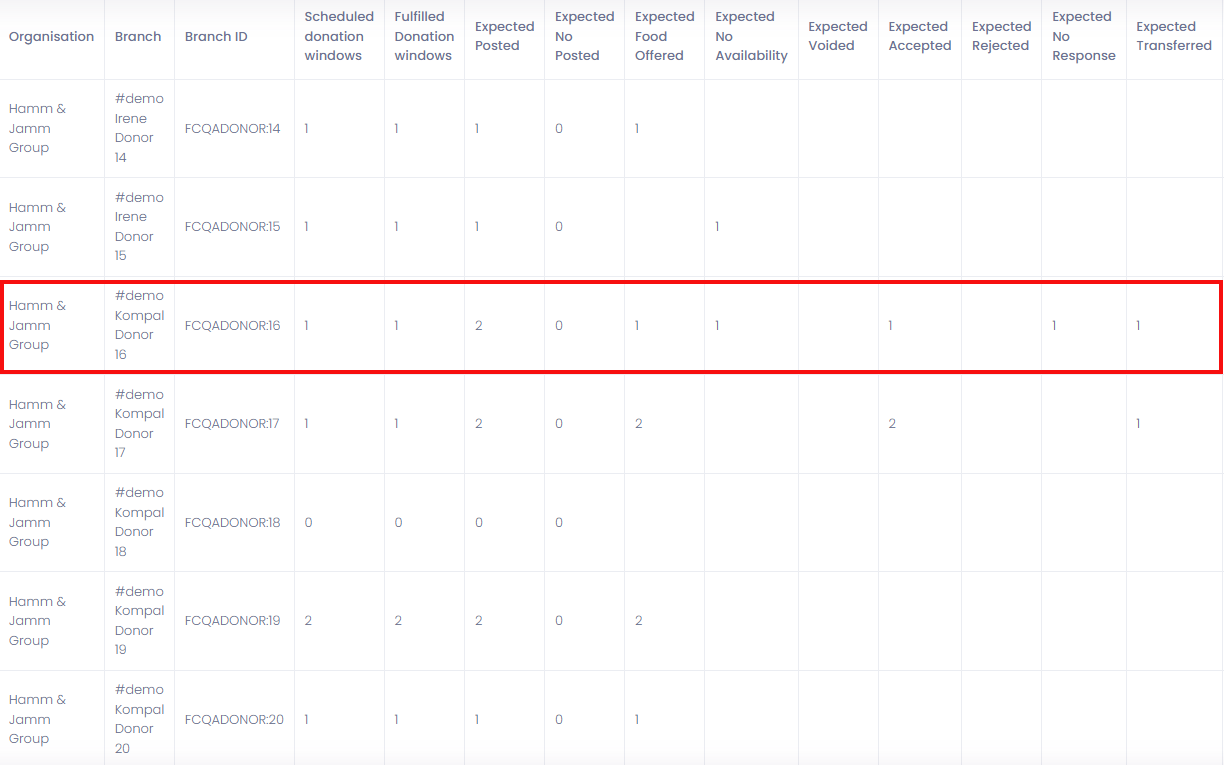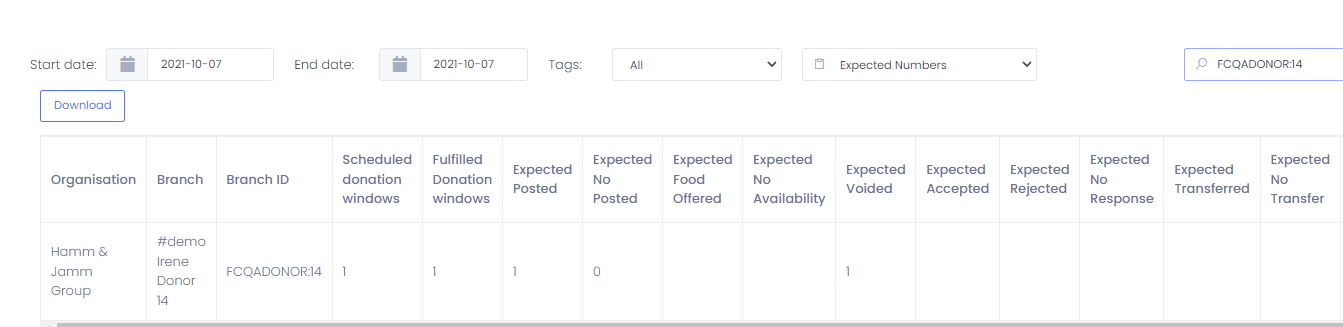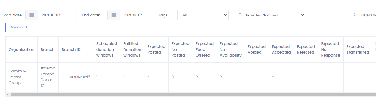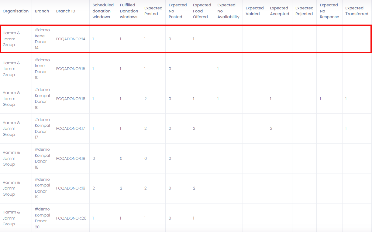 Expected Posted is the number of planned donations received by Foodiverse for a donor where active donation windows were used. It includes Expected voided donations