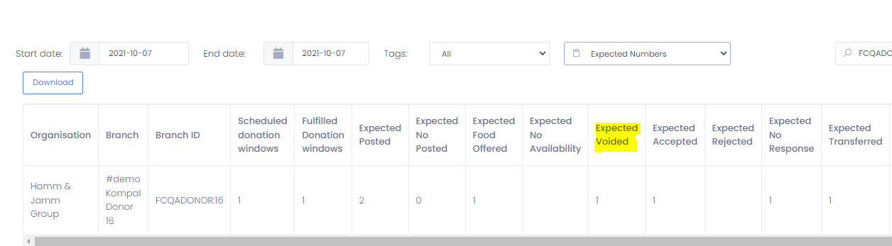 Expected Voided column in the KPI reports is the count of donations voided that were posted in the Active donation windows.