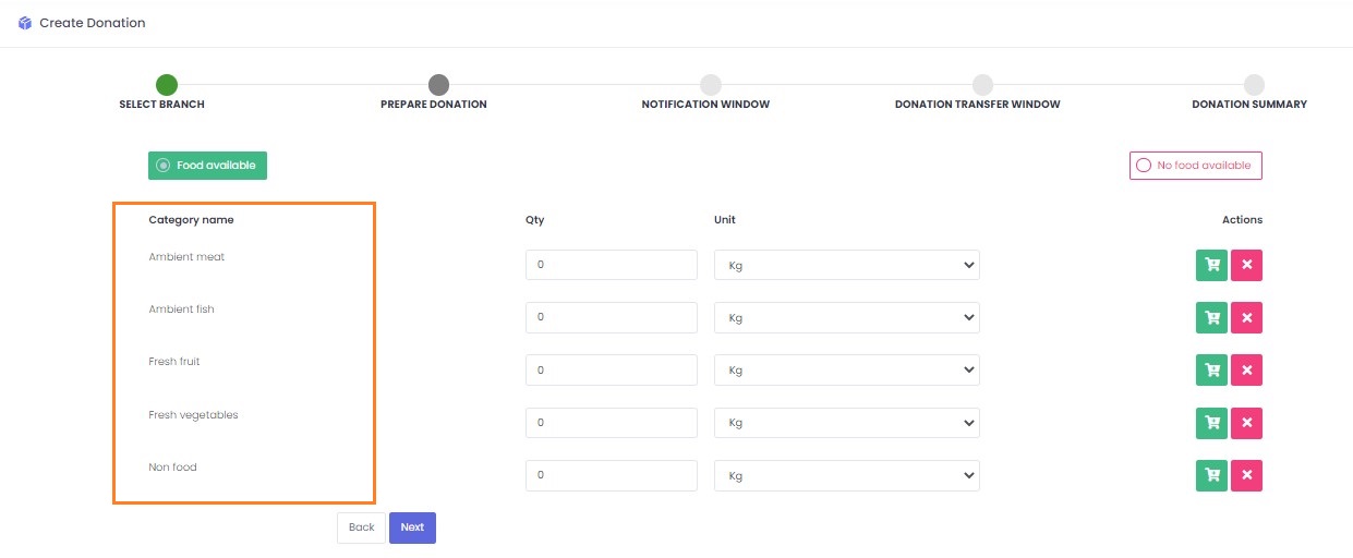 Donor branches will use this list to add food details when creating a donation.