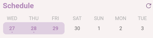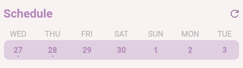 Click on the Days of the week to see individual or multiple days of your schedule.