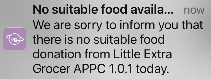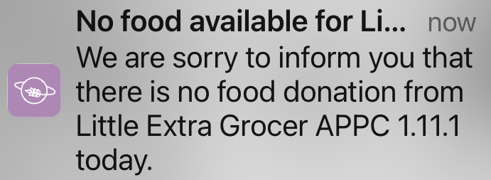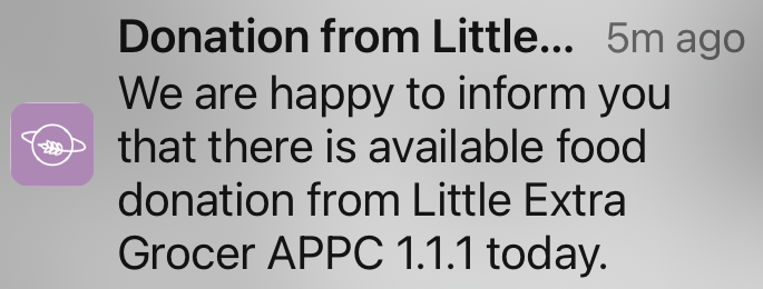 These notifications can pop up on your device if you have the Foodiverse app open and we need to send you an alert about a donation.