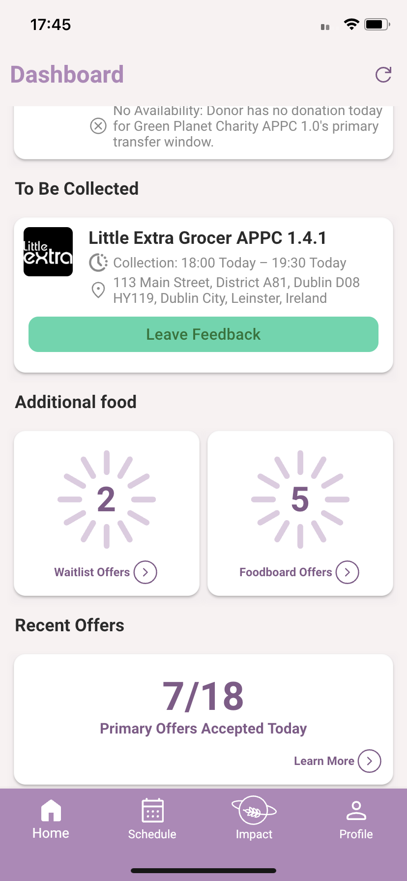The Foodiverse Home Screen also lists donations where your charity is on the Waitlist for a scheduled slot with a retailer store. Click Waitlist Offers card to view your Waitlist donations. (To learn more about what a Waitlist donation is, click here).
