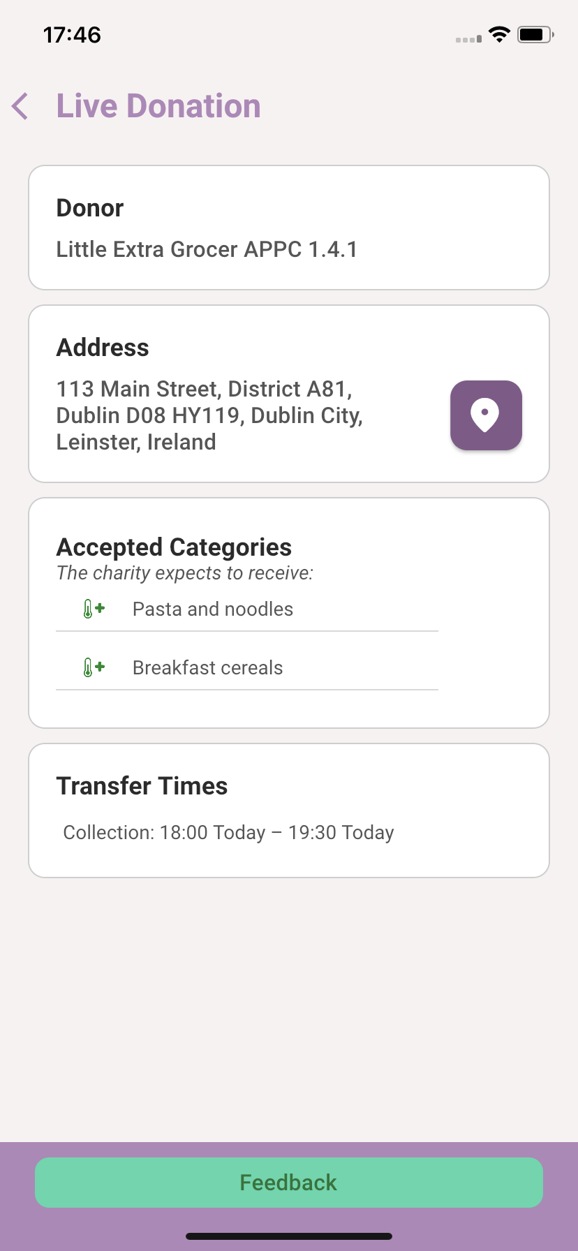 Click the donation card to see more details. Once the donor marks the donation as transferred the donation card will disappear.