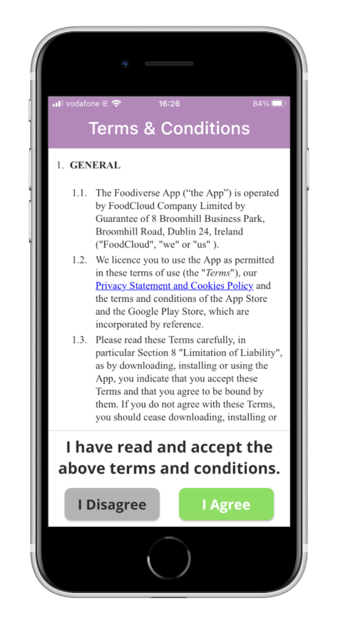 Please read the Terms and Conditions and select I Agree to use the app.