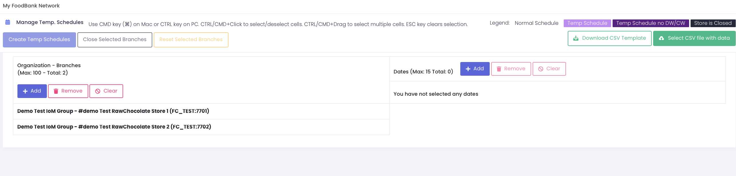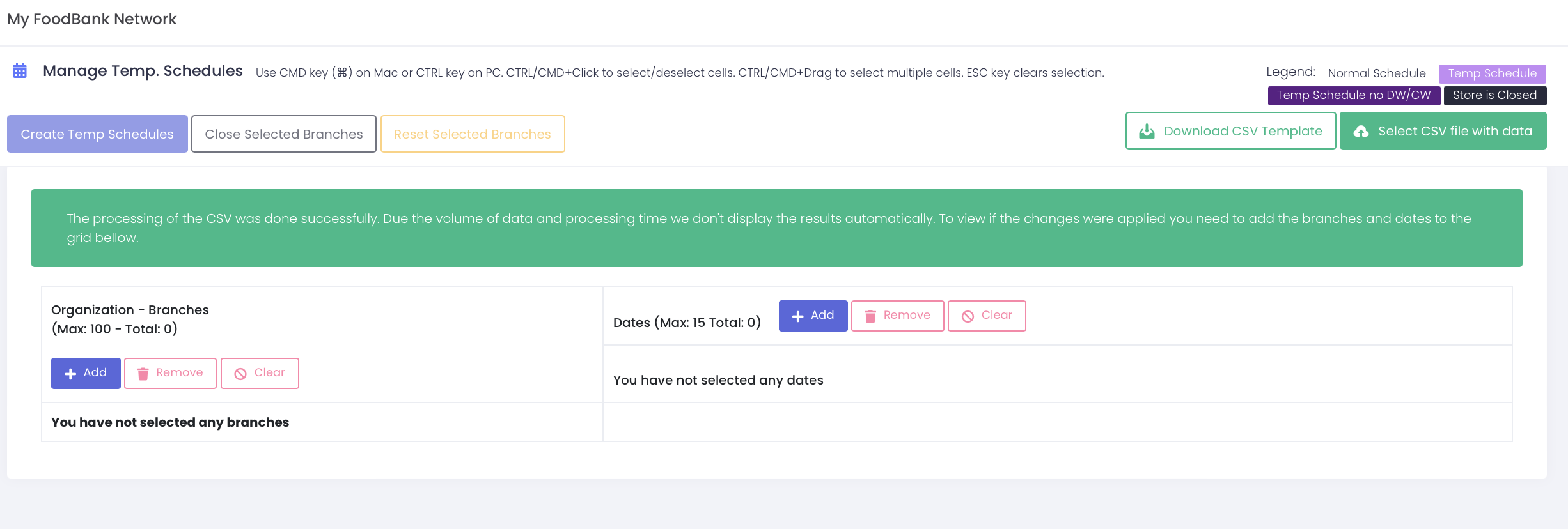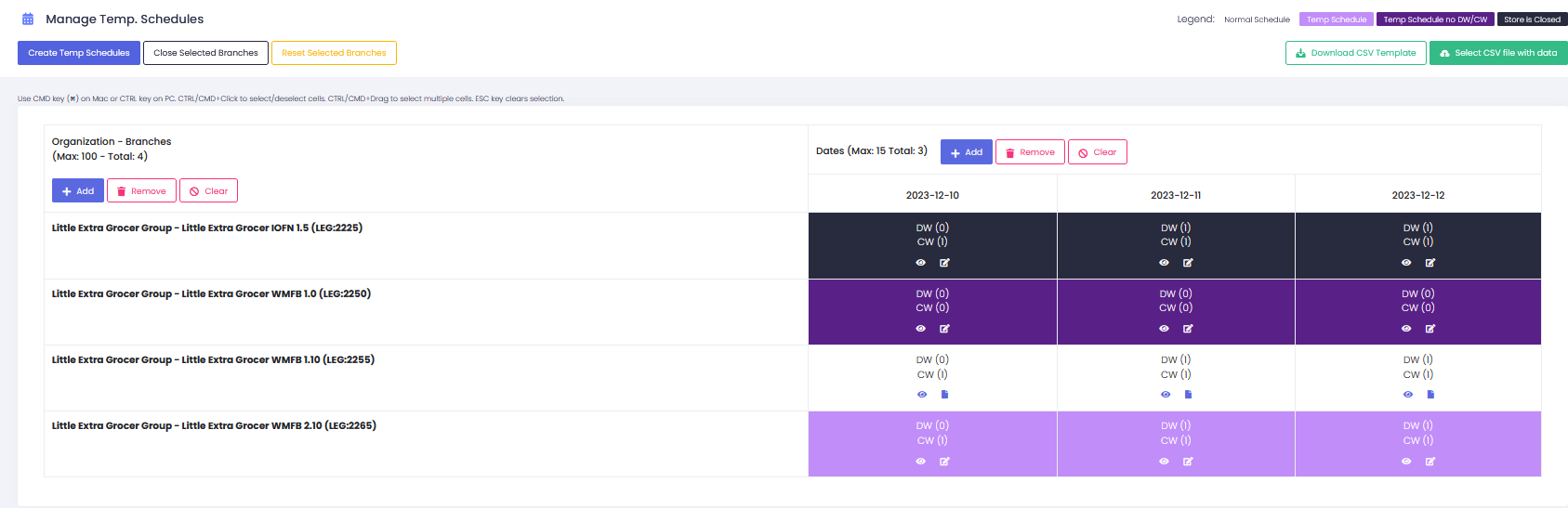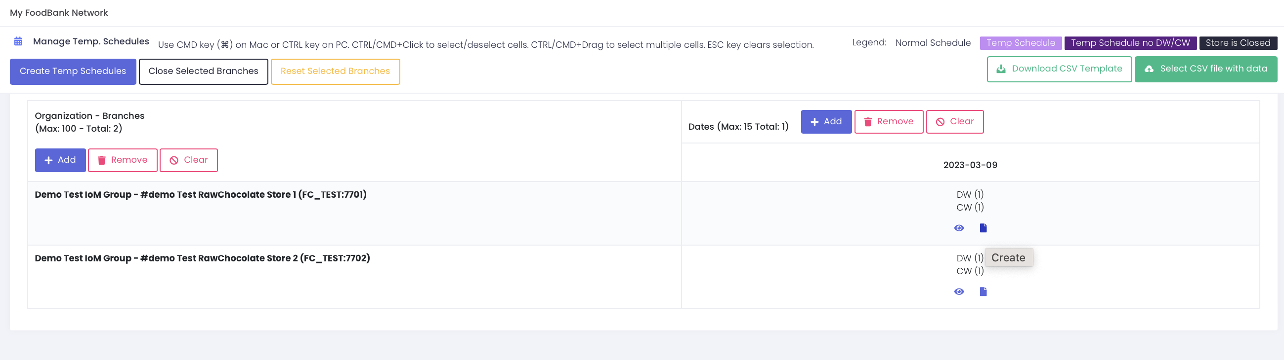 This will create a temp schedule for all the selected branches and dates