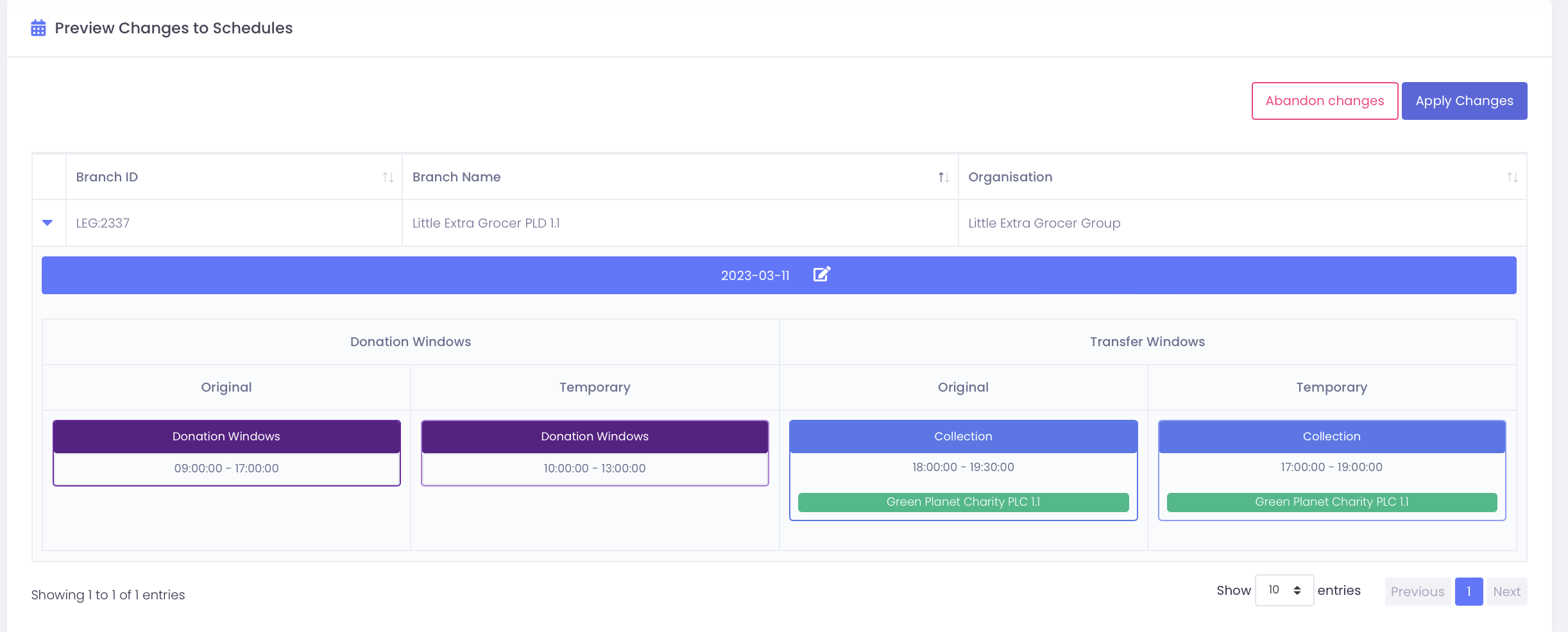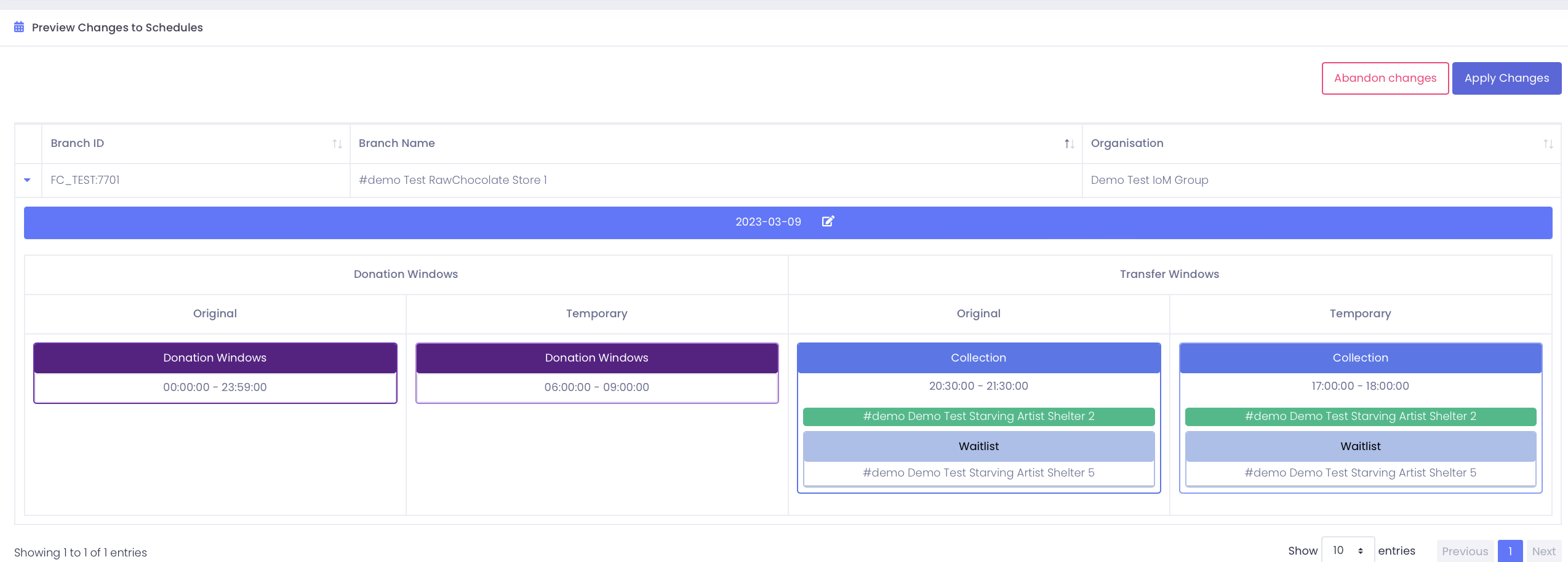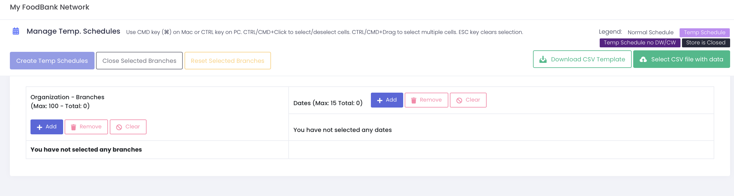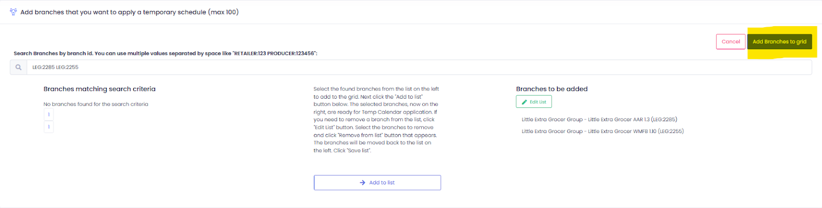 This will create a temp schedule for all the selected branches and dates