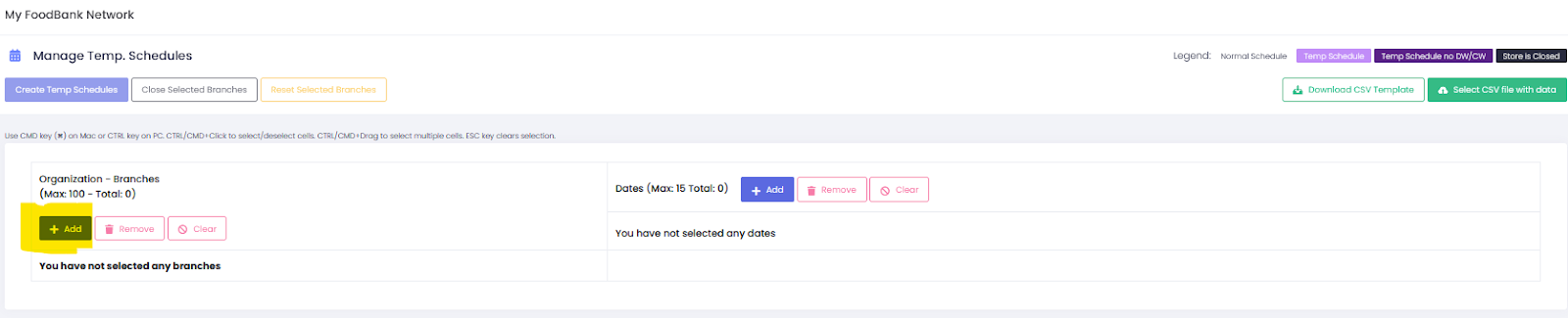 Steps to apply temp schedules using CSV file upload: