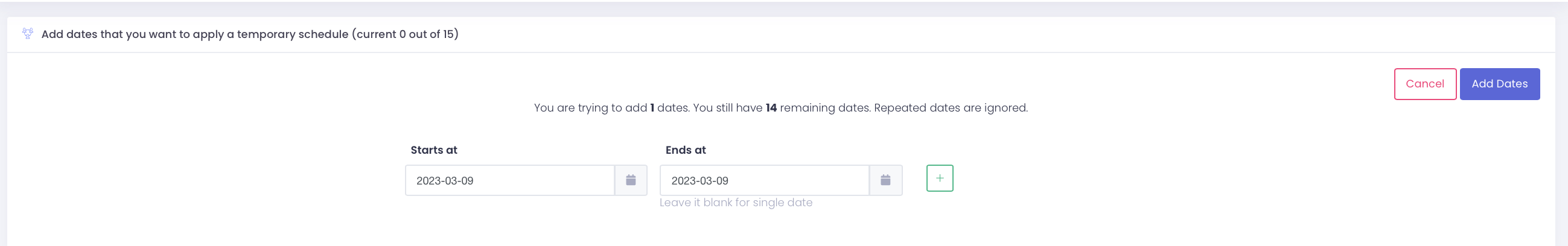 Click on add button to select the dates