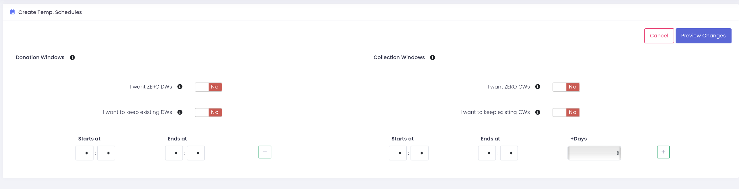 I want ZERO CWs will be used when no scheduled collections are expected, custom collection windows can still be used