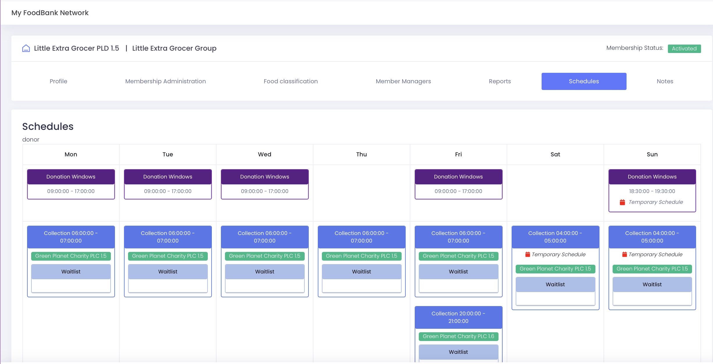The Temp schedules for the branches can be viewed under with - Manage Network Members → Actions → Manage members → Schedules