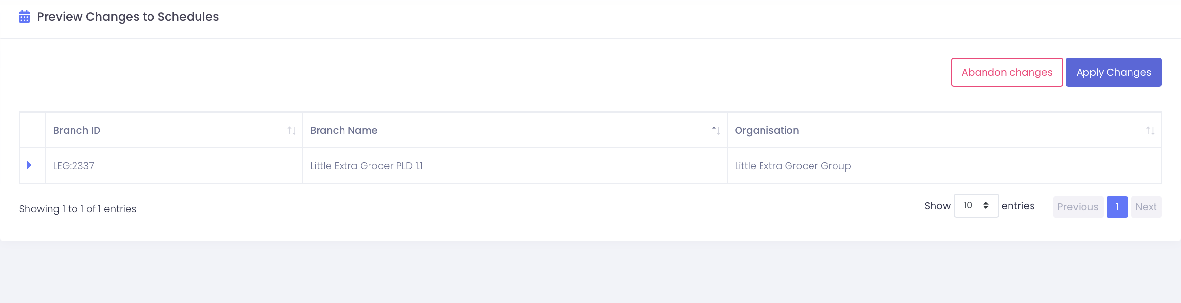 This screen shows all the branches you have selected and the date range you have chosen.