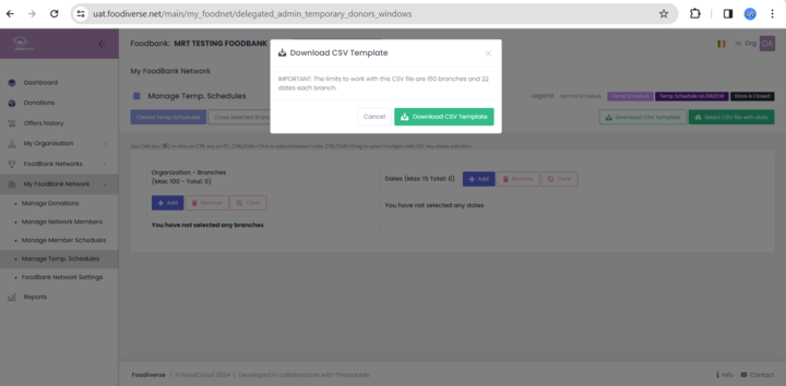 Navigate to the Manage Temp. Schedules from the left hand side menu on Foodiverse