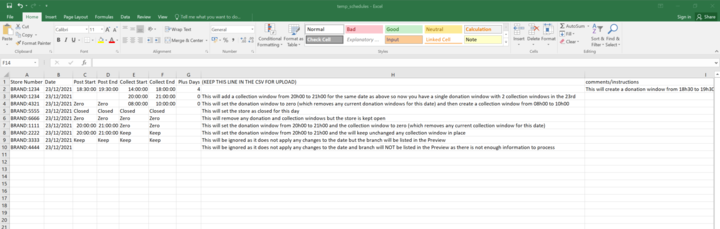 This will create a temp schedule for all the branches and dates on the list