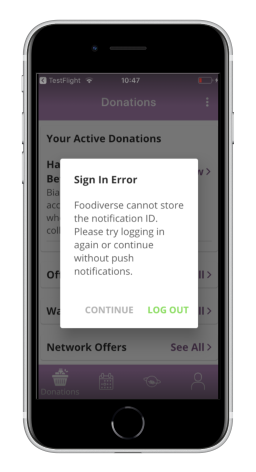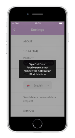 Sometimes you may encounter problems when signing-in or signing-out of the Foodiverse app.