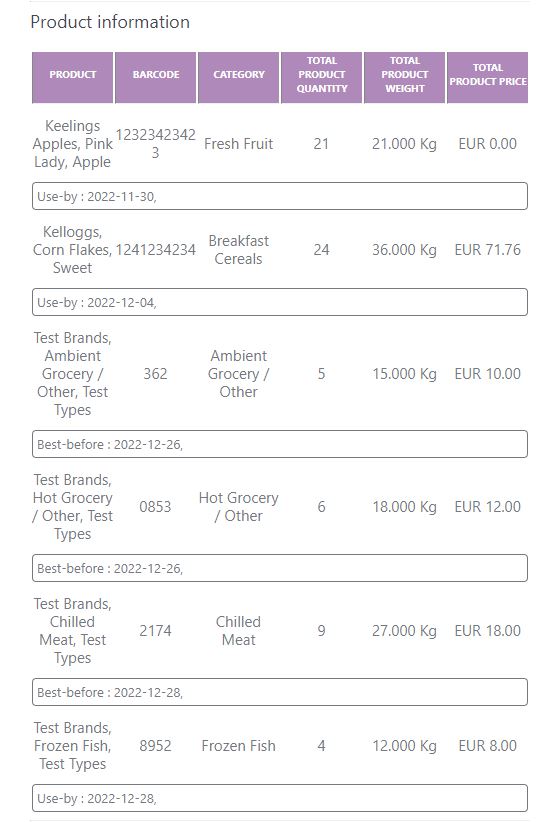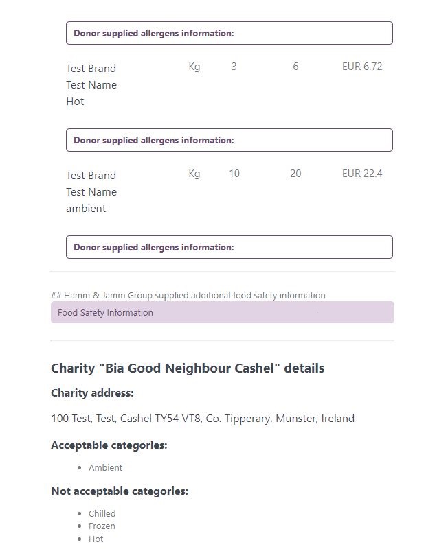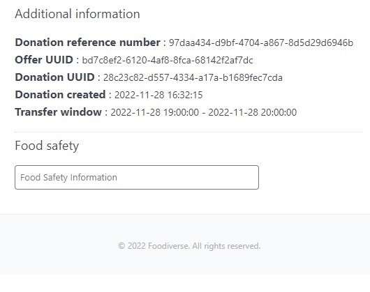 Allergen information and Food Safety Information will be displayed if supplied by the donor