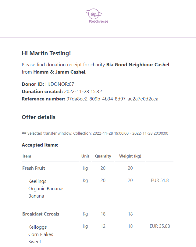 Some donors provide this information through integration with Foodiverse